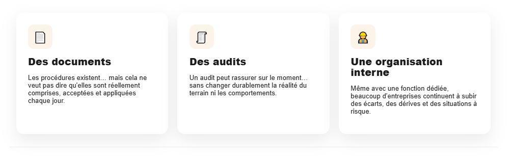 Dans cette vidéo offerte de 18 minutes, je vous explique pourquoi la conformité sur le papier ne protège pas réellement vos équipes — et ce qui fait vraiment la différence sur le terrain.